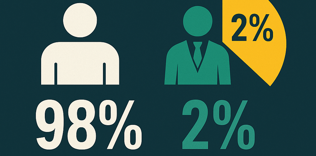 👉 10% are rich — and out of them, only 2% control 98% of the world’s wealth.